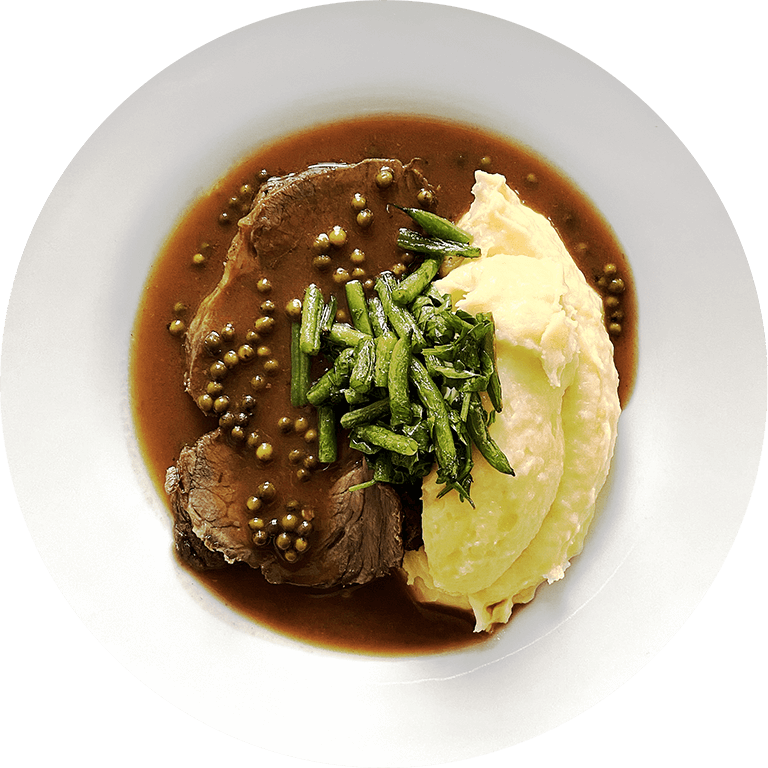 Sekaná s bramborovou kaší, okurkou a čerstvou majoránkou